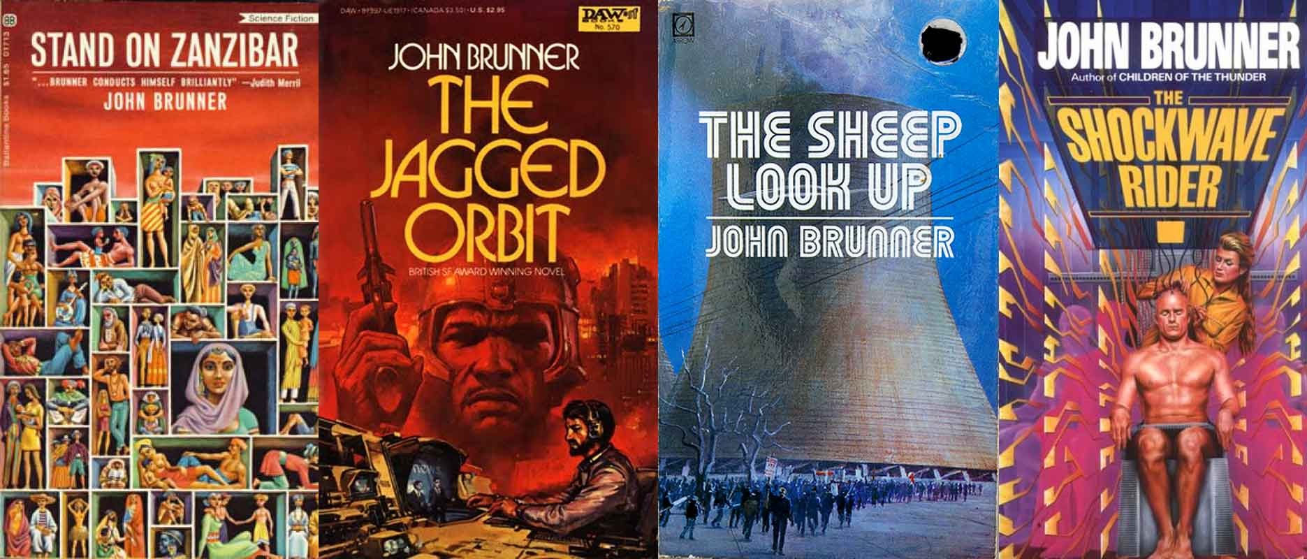 Brunner’s Club of Rome Quartet: Stand on Zanzibar (1968), Jagged Orbit (1969), The Sheep Look Up (1972) and The Shockwave Rider (1975)