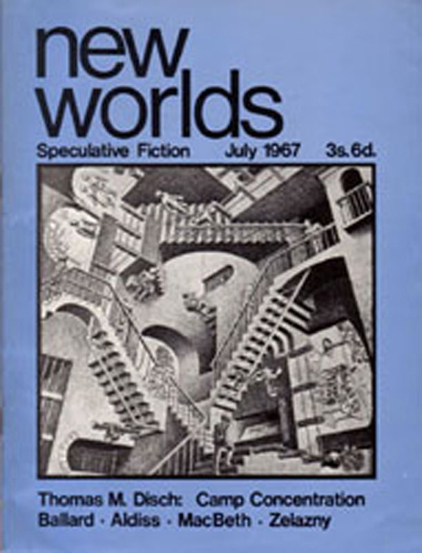 Moorcock took over the editorship of New Worlds in 1964, and a few years later, he was managing a magazine that had seized the zeitgeist head-on. In this August 1967 issue, the cover features the work of Eduardo Paolozzi – the Scottish Italian sculptor and ‘co-inventor’- of Pop Art (with his contemporary Richard Hamilton). This was one of a tiny bundle of magazines that in one way illustrated and in another way formulated, the spirit of the age. These included Architectural Design (AD), Oz magazine, International Times (IT), Rolling Stone (in its original low-print-cost, newsprint-paper, offset litho form), and of course New Worlds SF. New Worlds received a small annual grant from the UK Arts Council in recognition of the fact that Moorcock was featuring the best speculative fiction, articles about modern art, philosophy, science. It was a monthly fix of what was happening in the late 1960s – in poetry, fiction, SF, art, thought.